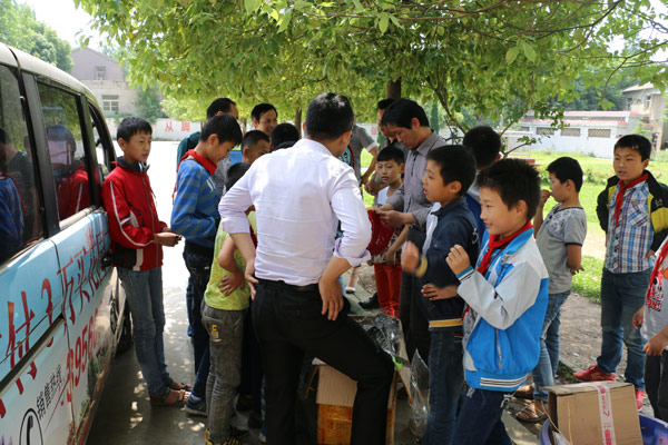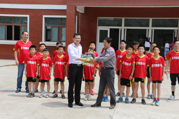 擔(dān)子明德小學(xué)足球隊(duì)接受捐贈(zèng)