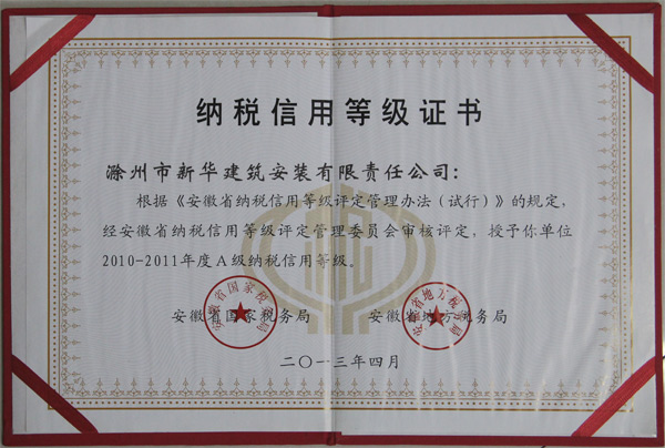 企業(yè)綜合信用等級(jí)評(píng)價(jià)證書